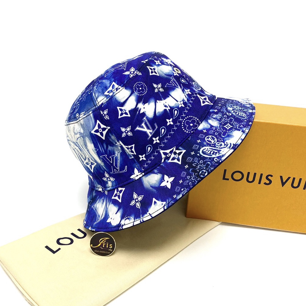 หมวก Lv bandana bucket hat ของใหม่ พร้อมส่ง‼️ หมวกทรงบัคเก็ตลาย bandana monogram บนพื้นคอนตอนสีน้ำเงินขาว สลับใส่ได้ 2 ด้านนะคะ อีกด้านปักชื่อ LOUIS VUITTON สีขาว เป็นหมวกจากคอลเลคชั่นใหม่นะคะ fall-winter…