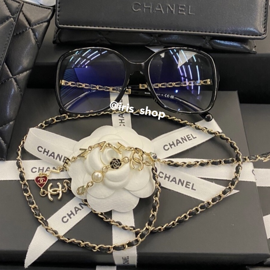 แว่นตา Chanel eyeglasses with chain ของใหม่ พร้อมส่ง‼️ แว่นตากรอบสีดำทรง oversize เลนส์ใส ขาแว่นลายโซ่ มาพร้อมกับสายคล้องคอโซ่พันหนังสีดำ และแต่งด้วยโลโก้ ตัวอักษรเรียงตามชื่อแบรนด์ และสัญลักษณ์ที่เป็นเอกลักษณ์ของแบรนด์ ตัวสายคล้องคอสามารถถอดออกได้นะคะ อยู่บ้านก็สามารถ shopping online ได้นะคะ…