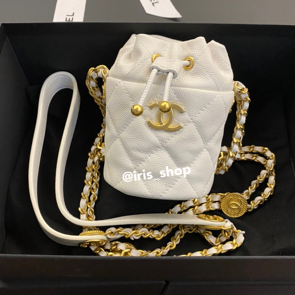 กระเป๋า Chanel 19 mini bucket with chain white caviar Ghw ของใหม่ พร้อมส่ง‼️ กระเป๋าทรงถังใบเล็กสุดน่ารักขนาด 11 × 9 × 8.8 cm หนังคาเวียสีขาว…