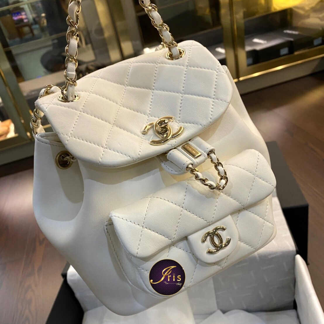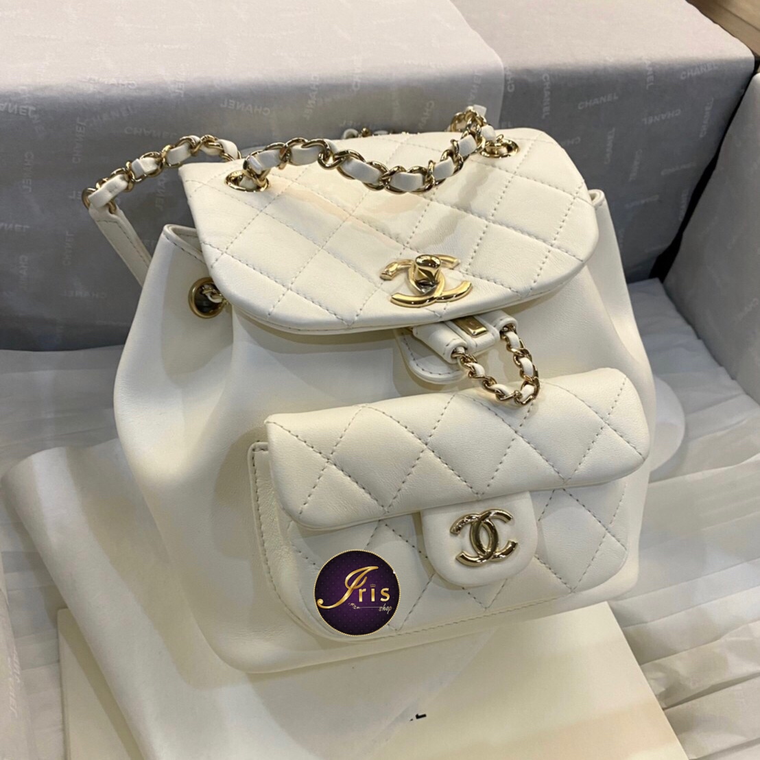 กระเป๋าเป้ Chanel duma backpack white leather Ghw ของใหม่ พร้อมส่ง‼️