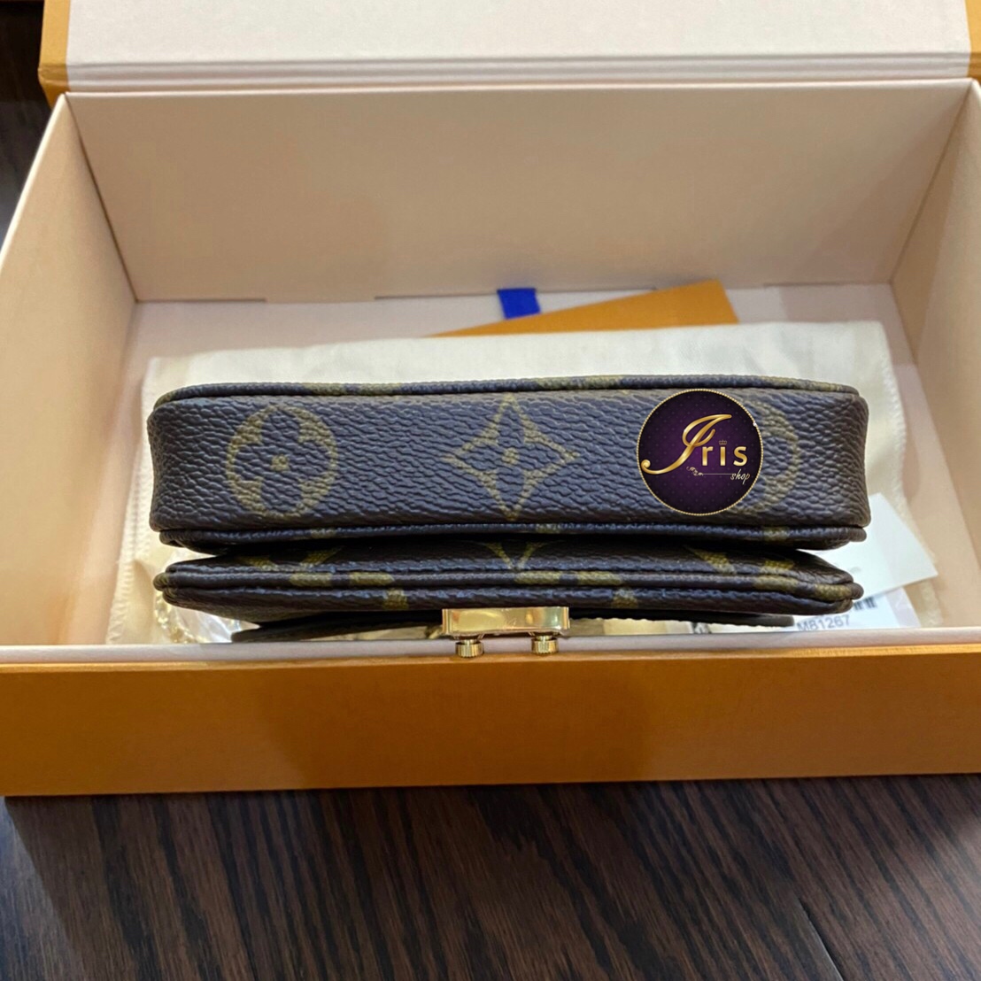 กระเป๋าใบเล็กไซส์ micro ขนาด 14 x 11 x 3.5 cm หนังลาย monogram ตัวล๊อคแบบ S-lock สายสะพายโซ่สีทอง สามารถถอดออหได้นะคะ สวย น่ารัก และหายากมาก